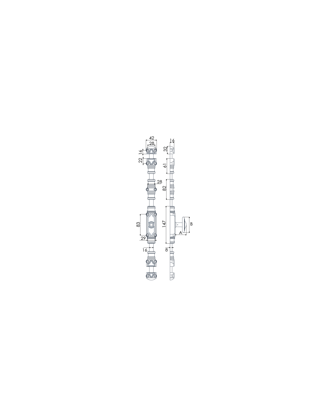 - Crémone rustique, série forte, fonte, bouton ovale ou torsadé