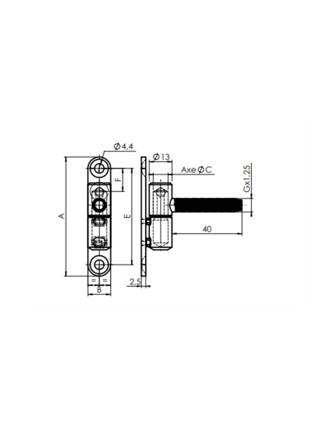 référence      AXB            C        E       F      G        Poids/gr