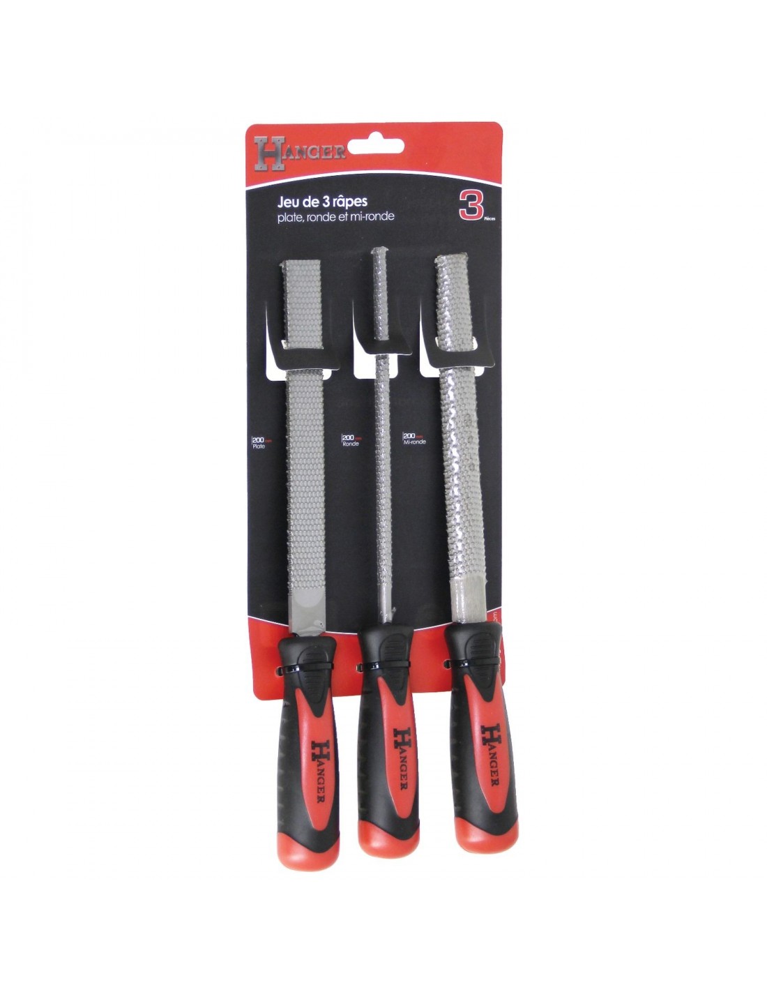 Jeu de 3 râpes grosses piqures plate, ronde et demi-ronde longueur 200mm