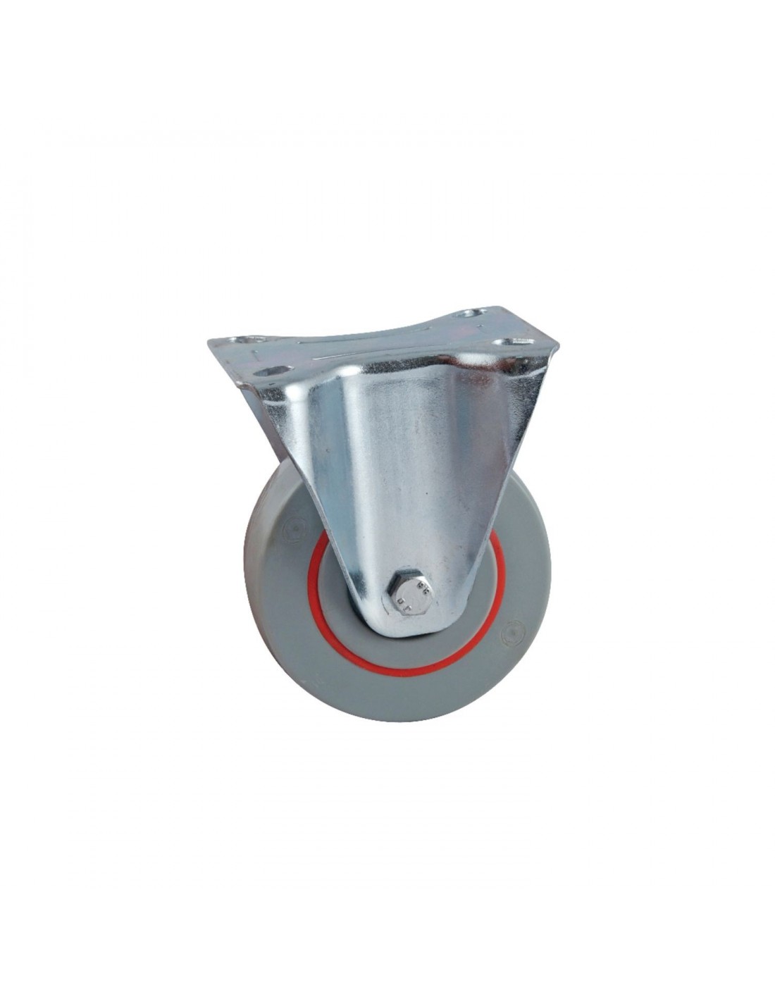- Blocage double effet, pivotement et roue. - Roue polyamide grise avec anneau caoutchouc amortisseur.