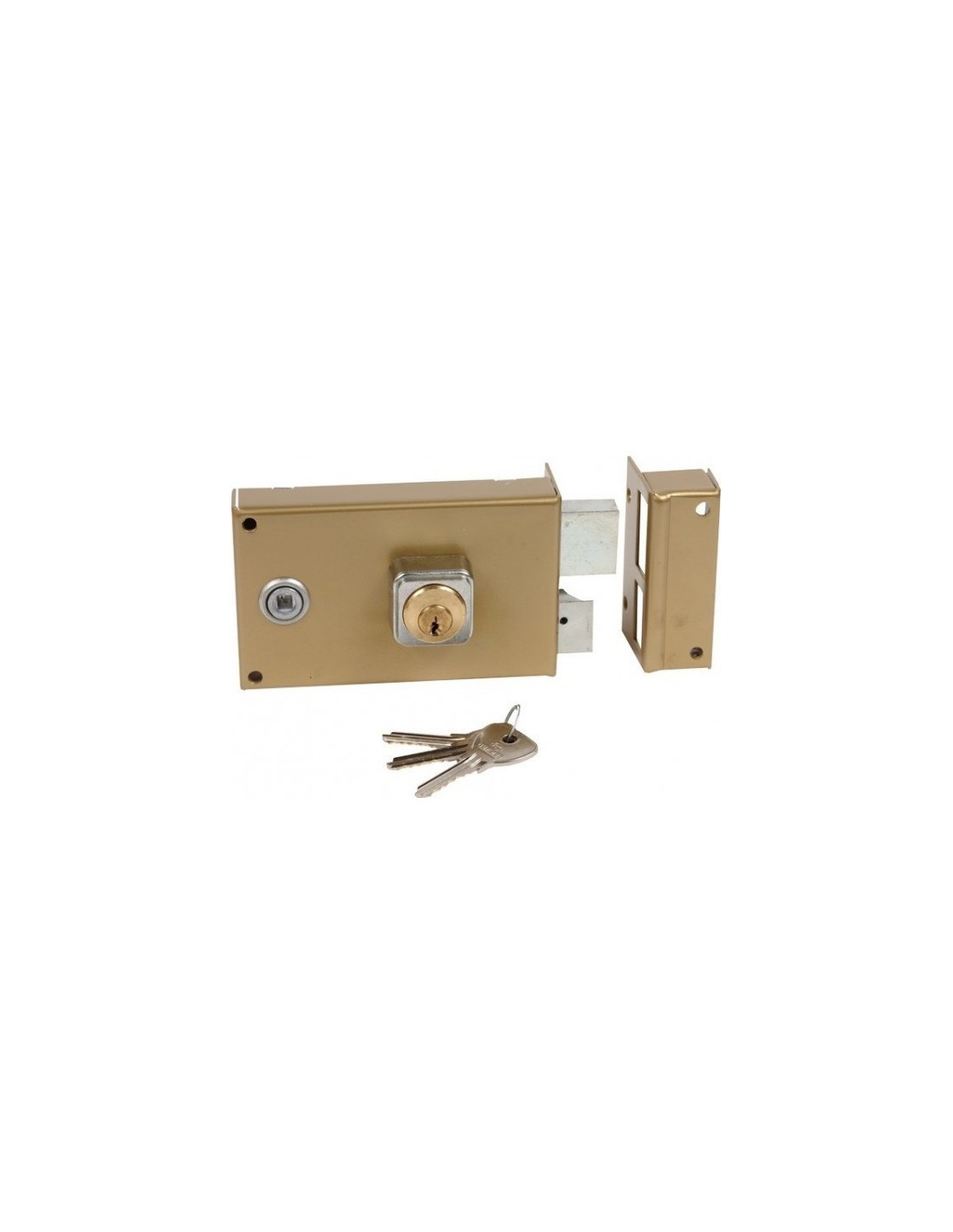 - Serrure 1 point en applique Alpha avec coffre en acier plié laqué vieil or.
