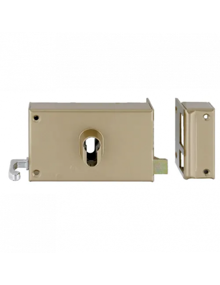- Serrure 1 point à profil européen avec coffre acier de 27 mm d'épaisseur teinté or.