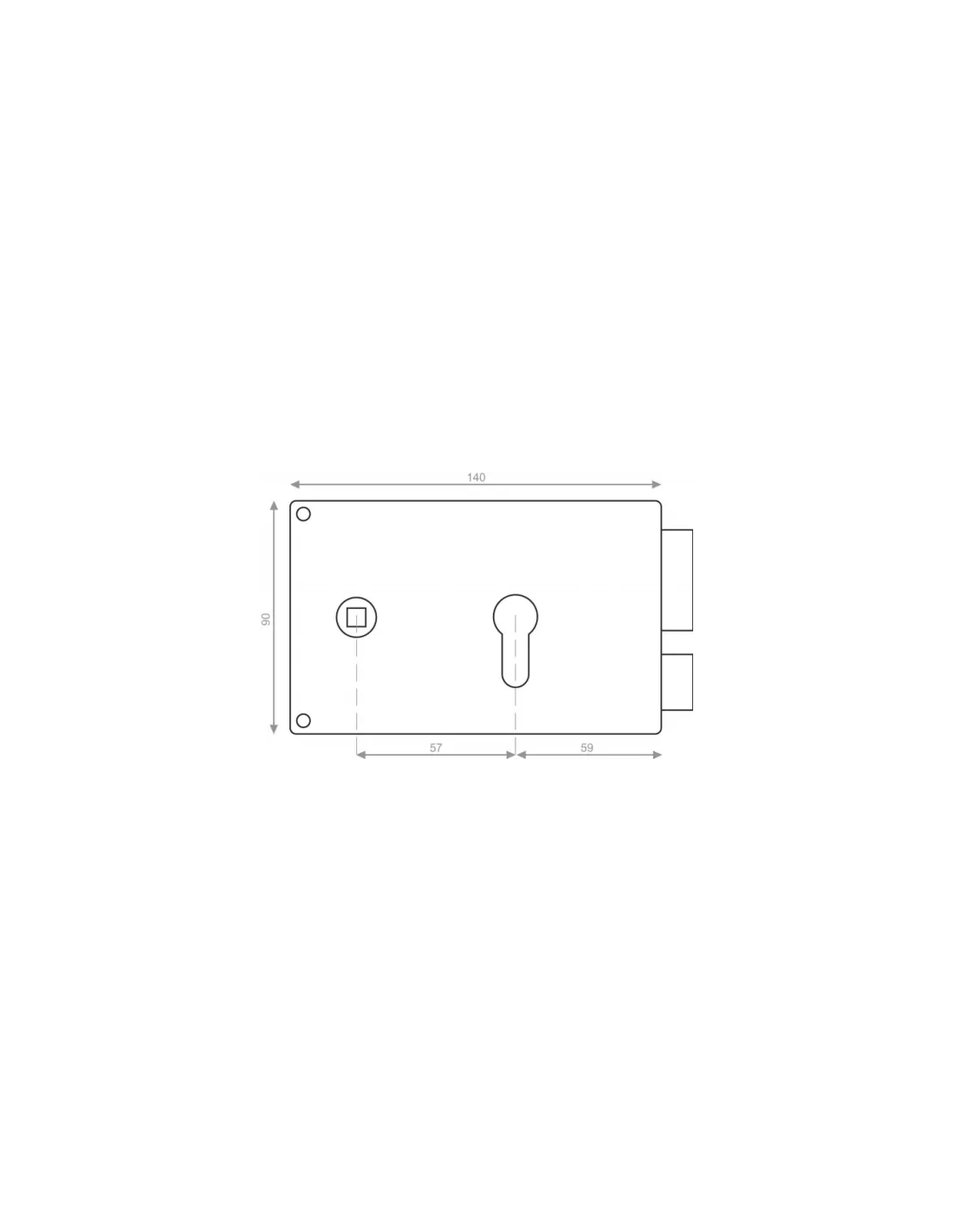 Modèle : Horizontale fouillot Coffre seul sans Cylindre 140X88MM Poussant Droite