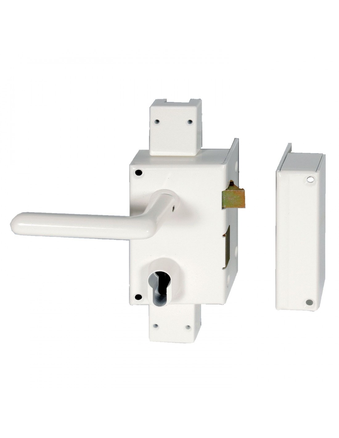 - Serrure en applique 3 points à profil européen pour remplacement sur tous types de portes.