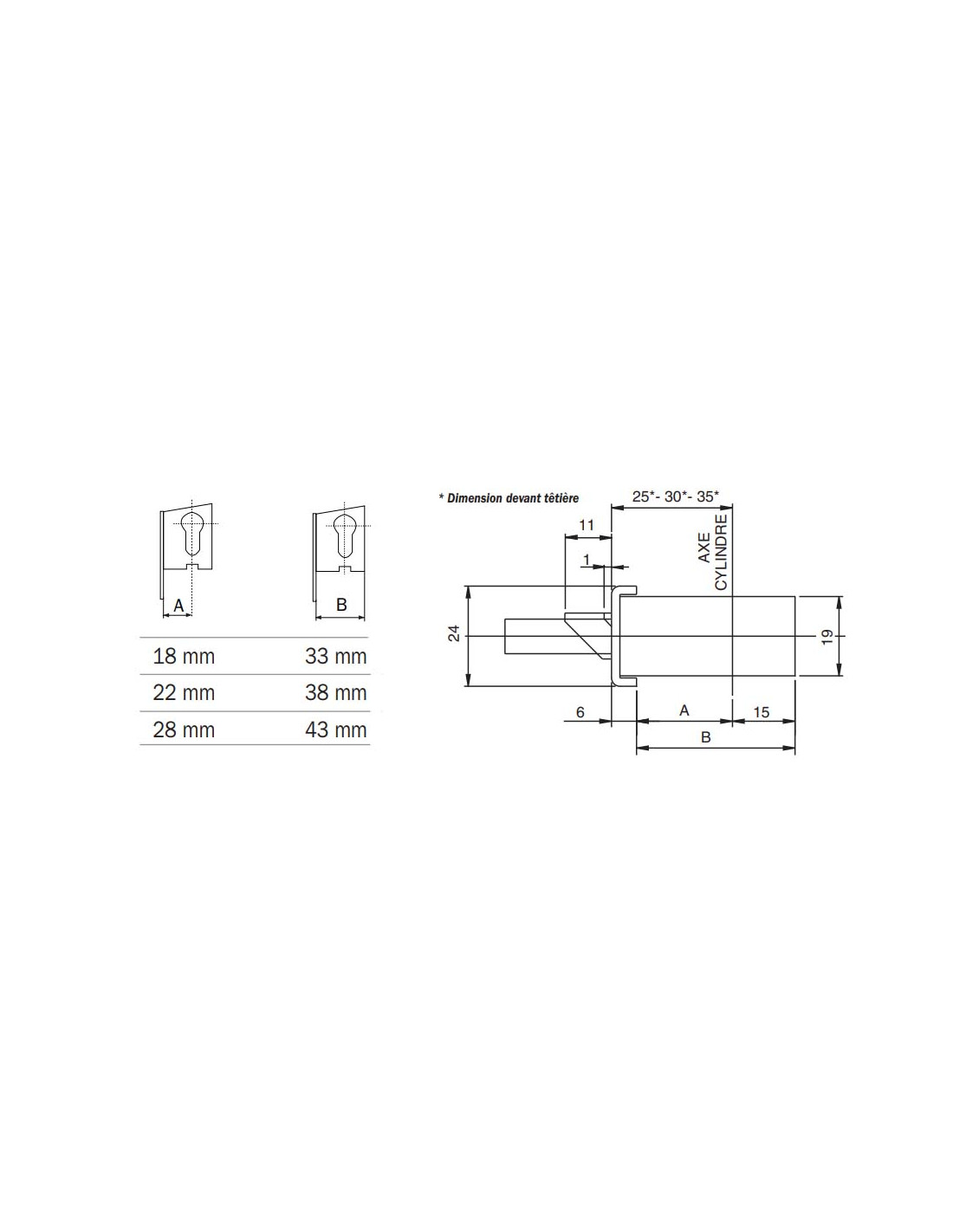 Modèle : Pene dormant demi-tour d'Axe 28mm -Largeur de coffre 43mm