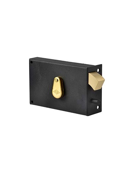 - Serrure 1 point en applique 4 gorges de grilles avec coffre et gâche en acier embouti couleur noire 15/10ème.