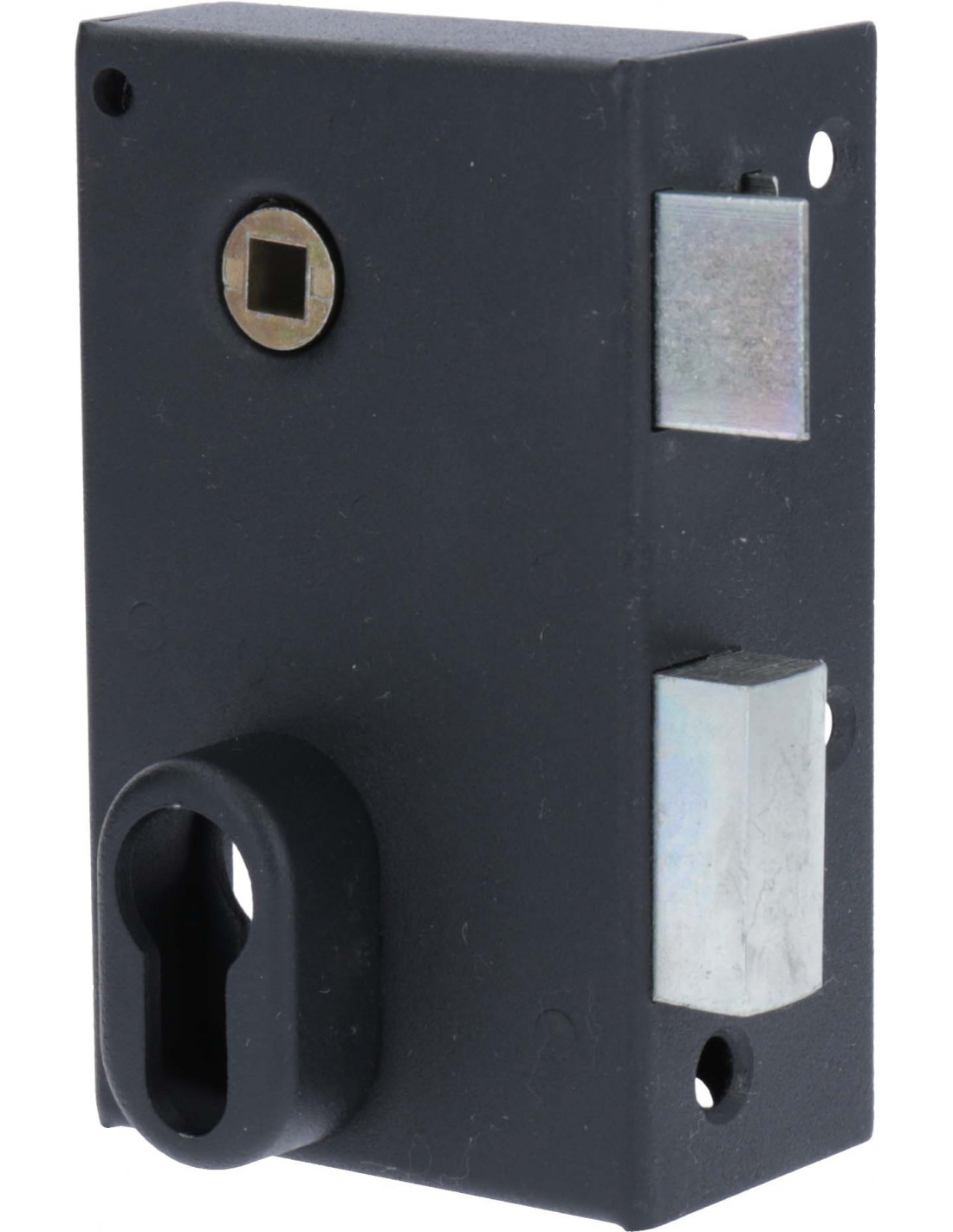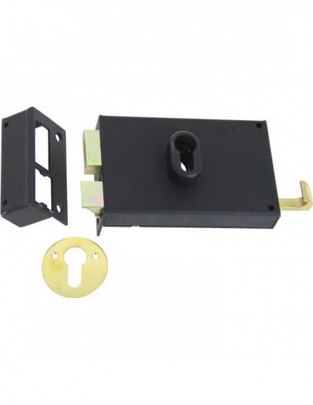 - Serrure 1 point en applique pour profil européen, à bords rectangulaires , coffre et gâche en acier cambré époxy noire