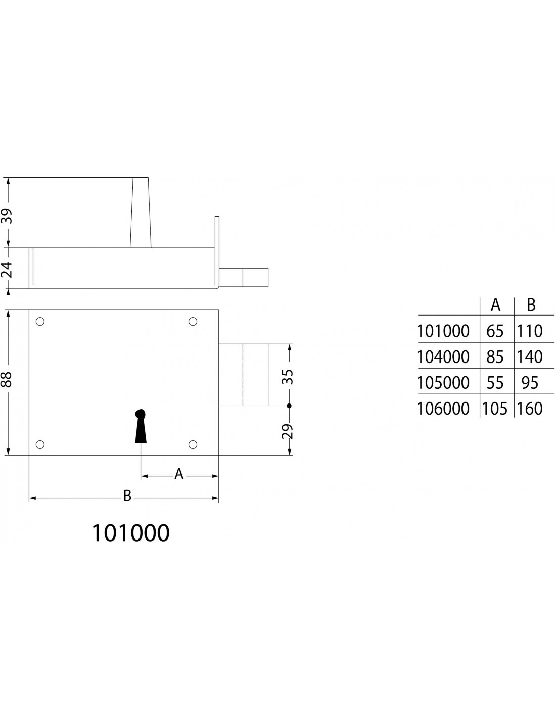 - Serrure 1 point en applique horizontale à pêne dormant avec coffre en acier embouti peint noir et pêne acier