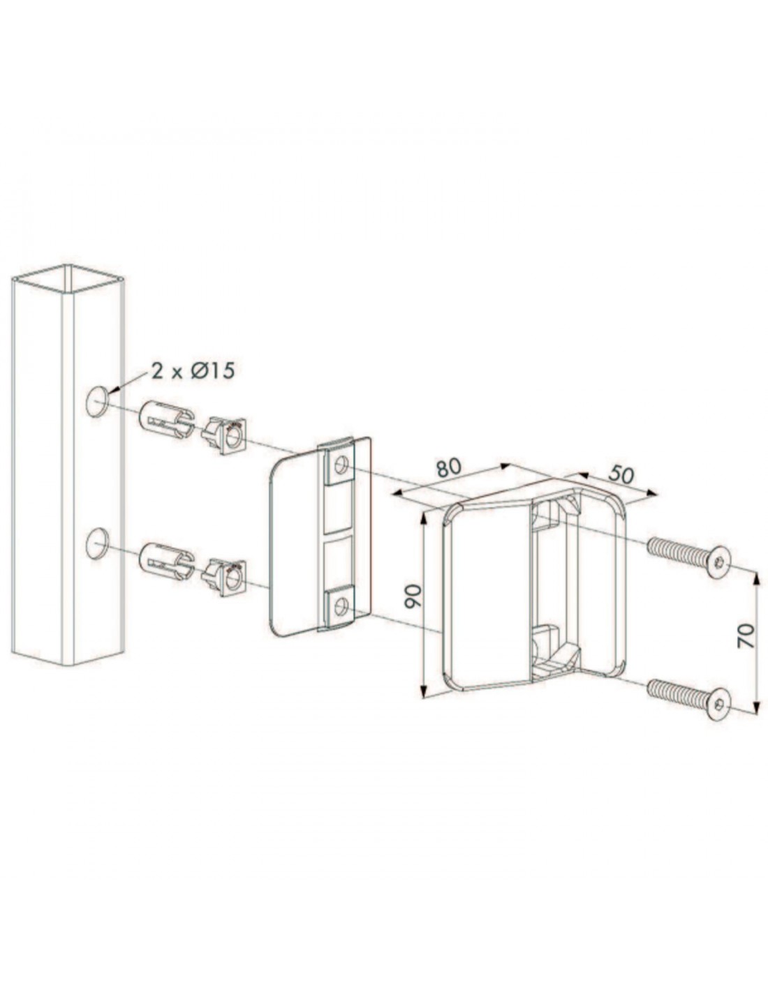 - Gâche en polyamide pour profils carrés de 40 mm et plus.