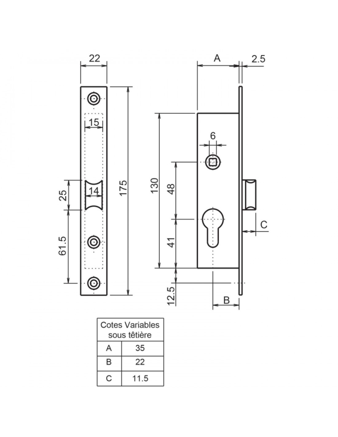 Modèle : Coffre 33X35mm Droite sans gache