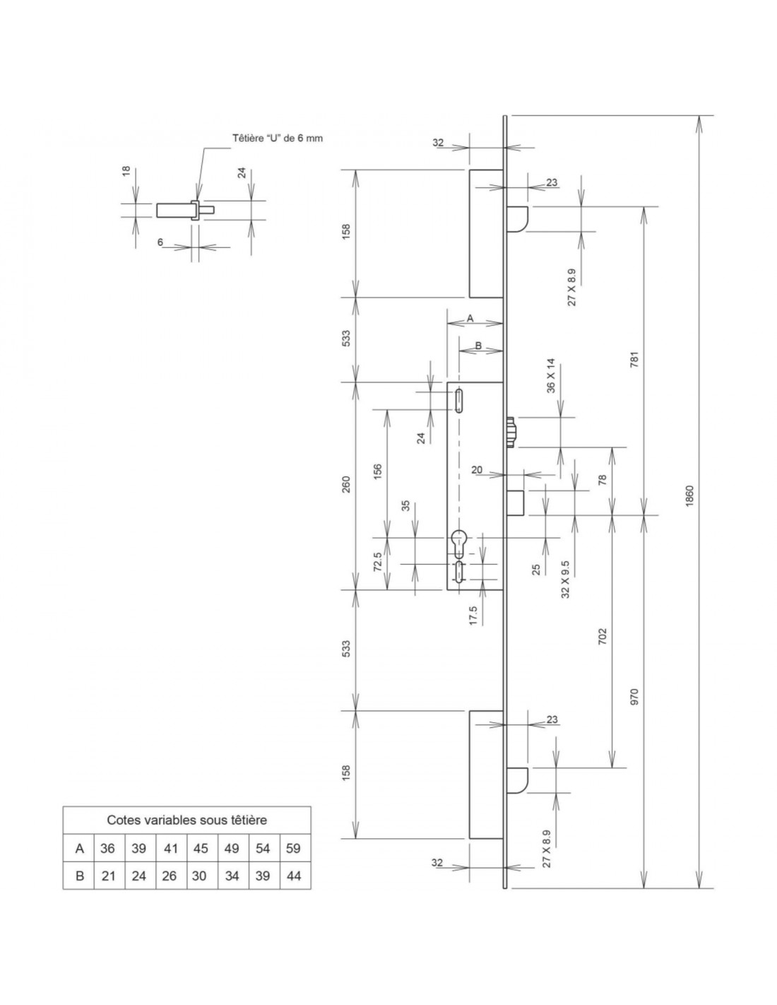 - Serrures à encastrer multipoints menuiserie métallique à têtière filante