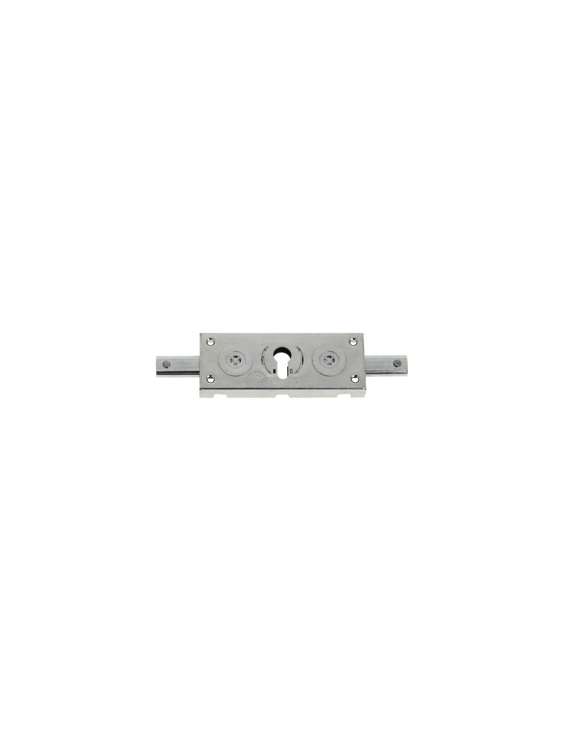- Serrure de rideau métallique pour cylindre européen avec coffre en acier zingué à pênes plats.