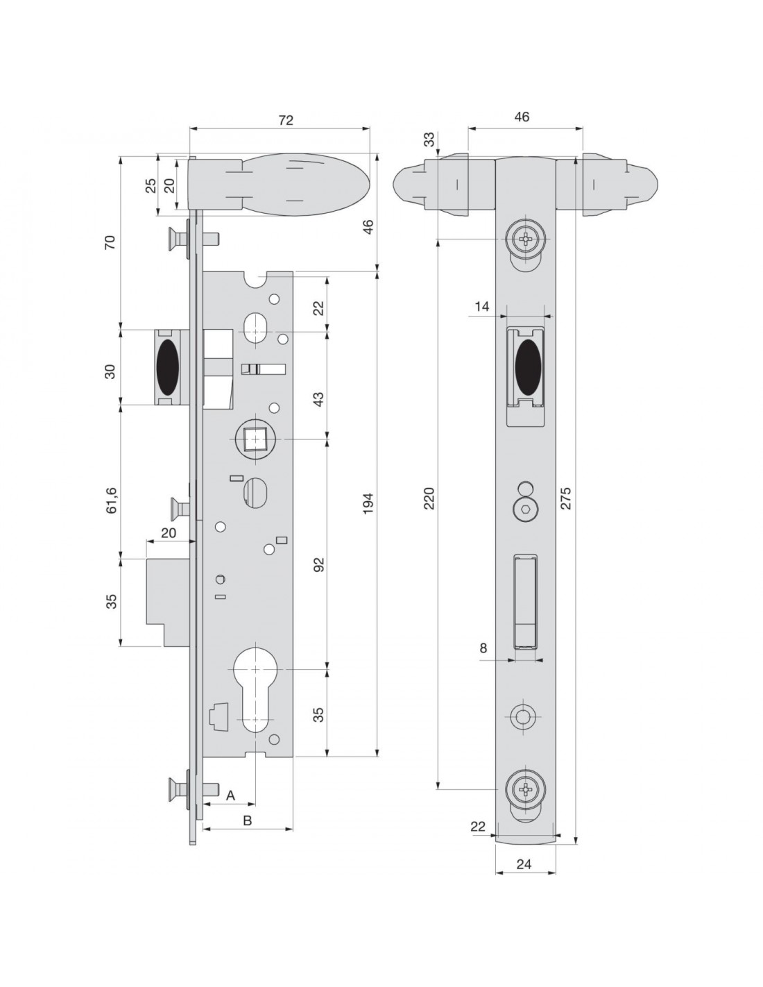 - Serrure livrée sans barillet et sans gâche.