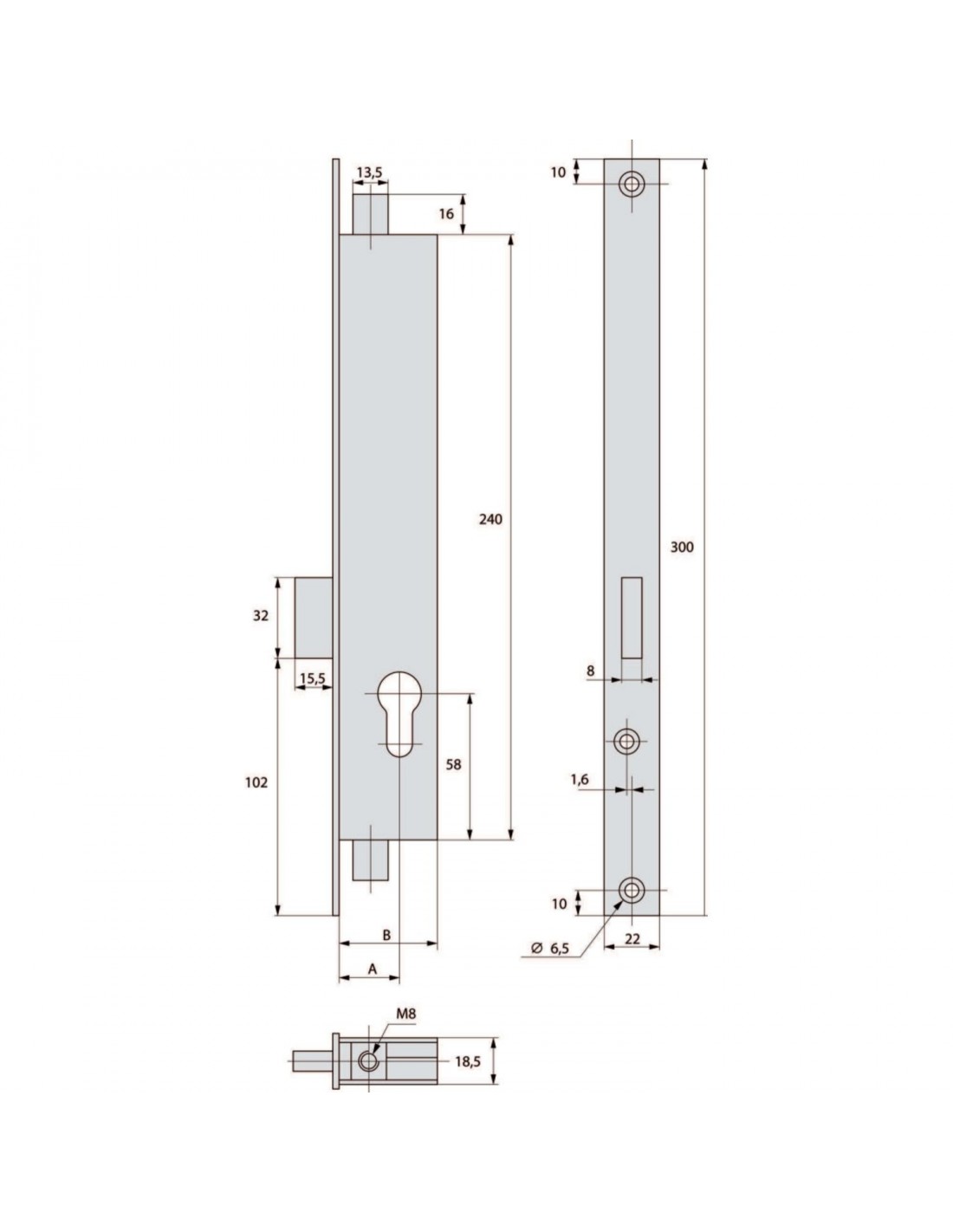 La Serrure à larder 3 points à tringles pêne dormant Série 2272 de la haute marque Stremler Assa Abloy est livrée sans gâche ni tringle.