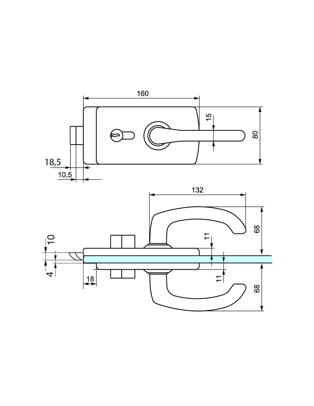 - Adaptable pour porte en verre de 8 mm.