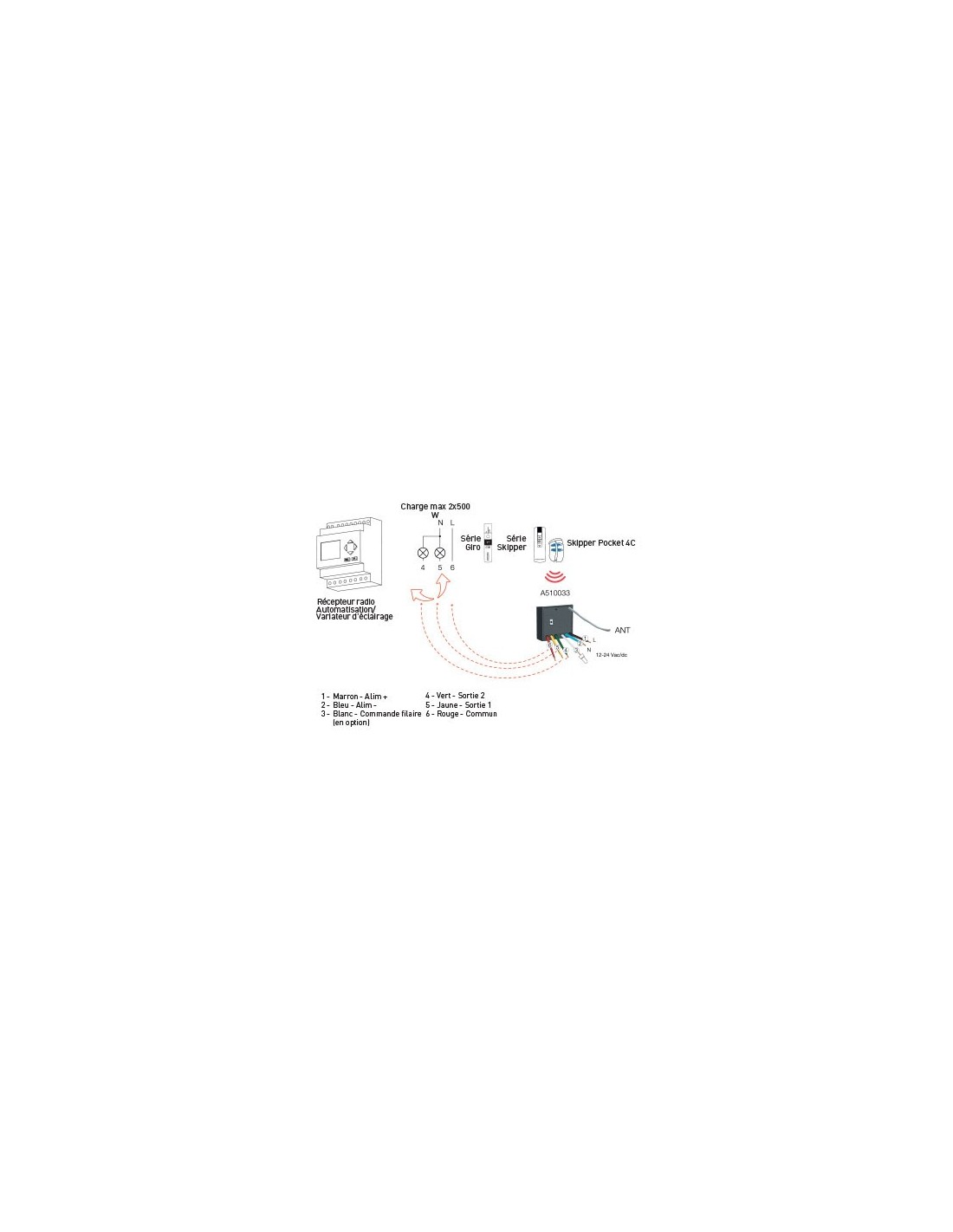 Entrée pour poussoir ou interrupteur de commande.